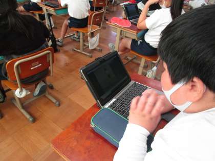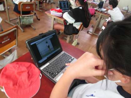 体育科では「マット運動」が始まりました。最初にタブレットを使って,どのような技に挑戦するのかを映像で確かめました。