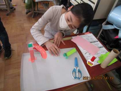 作りたいコースを紙の切り方や組み合わせ方を工夫して作っています。どんな作品が出来上がるのか楽しみです。