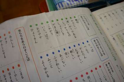 と,具体的に考えることができました。教科書の最後にのっている「ことばのたからばこ」も参考にしながら言葉を選んでいました。