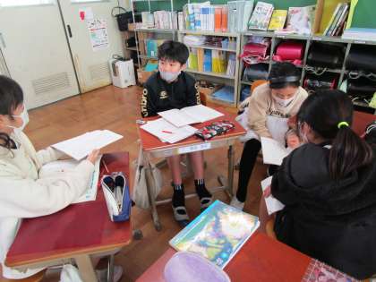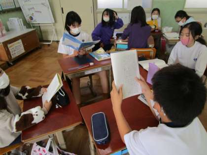 国語科では,自分が選んだ伝記を読んで考えたことを交流しました。友だちの考えを読むだけでなく,人物についてや具体的な場面についてなど,質問し合いながら交流を深めていきました。