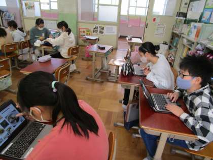梅小路ファームで育てているこかぶの出荷まであと少し。チラシやのぼり,お金入れなど,グループに分かれて作業を進めていきました。