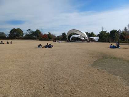 広い芝生で思い思いの場所で、グループ仲良く食べました。