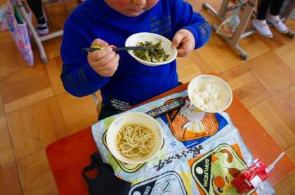 子どもたちはカレーうどんに大喜びでした。何人もの子が「おかわりしたいなぁ〜」と言っていました。