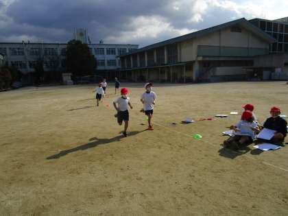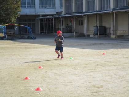 ゆっくりペース走では,初めから終わりまで同じペースで走ることをめあてに取り組んでいます。ペアの友達のタイムを記録し,「いいペースだよ。」「少し落ちているよ。」など声をかけていました。