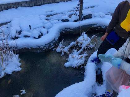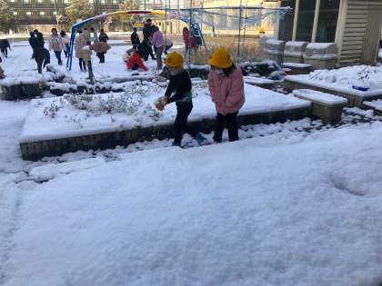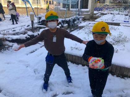 雪の他にも,池の水がシャーベットのように凍っていたり,遊具に小さなつららができていたり。雪の日ならではの発見がたくさんありました。サラサラふわふわの雪に大喜びの子どもたちでした。
