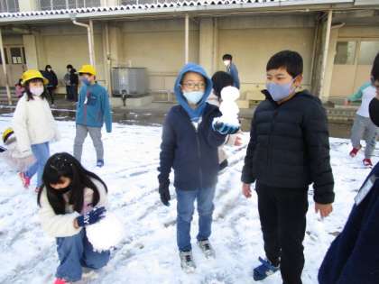 登校してくるなり,「先生,雪が積もっていたよ。」や「雪がとても冷たかったよ。」と嬉しそうに話してくれました。