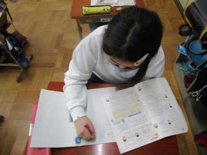 整数のわり算の筆算の仕方をもとに,小数のわり算の筆算の仕方を考えました。