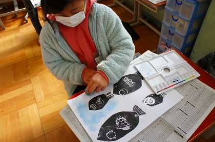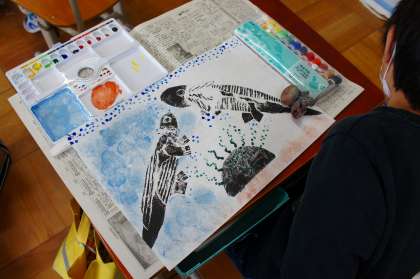 1枚目と2枚目で,雰囲気を変えて仕上げている子もいました。版を作ると,繰り返して何度も刷ることができます。版画の良さですね。