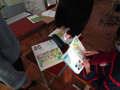 国語科「漢字の広場5」では,示された漢字を使って,駅からおばあちゃんの家まで行く道のりを案内する文章を書きました。文章を書く前にペアで道すじを紹介し合うことで,どのように書いていけばいいかを考えることができました。