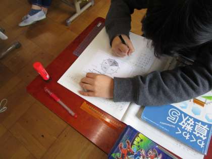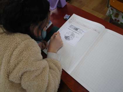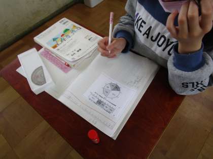 算数科「割合のグラフ」の学習では,帯グラフや円グラフを読んでいきました。その中で「割合の大きい順に並んでいる」ことや「全体のどれくらいを表しているのかが分かりやすい」といったことに気付くことができました。