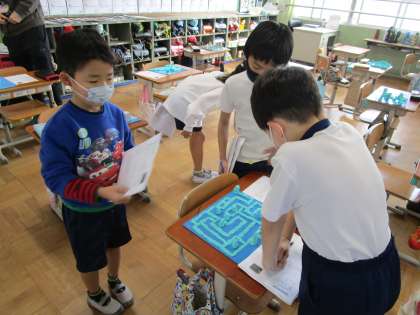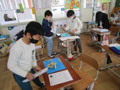 今日は,鑑賞会をしました。友だちの作品のよさをたくさん見つけていました。
