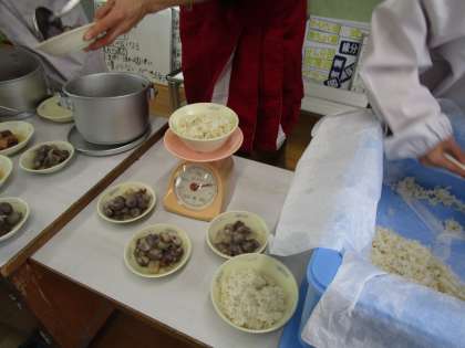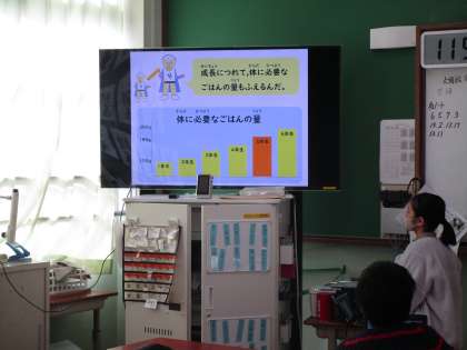 栄養教諭の船田先生による食に関する学習がありました。今回のテーマはご飯の量。高学年が給食で食べるご飯の量は,198gだと知った子どもたち。実際に測って入れてみることで,「結構あるやん」や「思ったより少ないな」といった声が聞こえてきました。