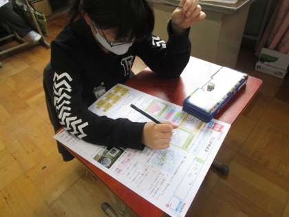 社会科では「たしかめよう」のテストに取り組みました。水産業から自動車をつくる工業までの範囲でしたが,子どもたちにとってはいいふりかえりの機会となったようです。