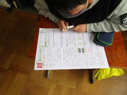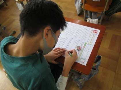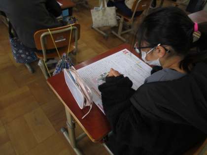 国語科では,「想像力のスイッチを入れよう」のテストに取り組みました。文章中から書き抜く問題では,間違いがないように,慎重に書き進める姿が見られました。