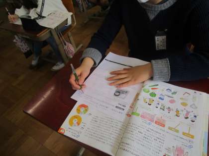 家庭科「食べて元気!ご飯とみそ汁」では,食事の役割と栄養のバランスについて考えました。ご飯とみそ汁に使われている食品を栄養素と体内での働きを調べることで,ご飯とみそ汁の2つだけでも,栄養バランスが取れていることに気づくことができました。