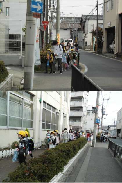 新しいメンバーで集団登校。初々しい班長さんに,元気いっぱいの1年生。とても新鮮な朝の風景でした。