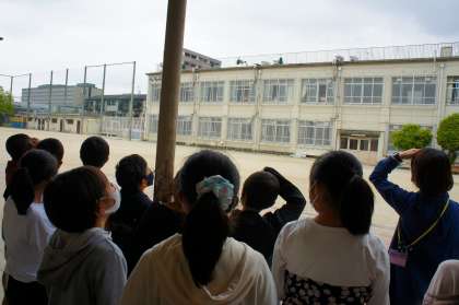 「天気は,雲の様子とどのような関係があるのだろうか」という学習課題を立て,毎日決めた時刻に,雲の観察を行うことにしました。