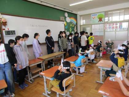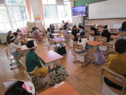 3時間目の初めに,6年生からのサプライズ。一人一人に手作りのかんむりをもらいました。