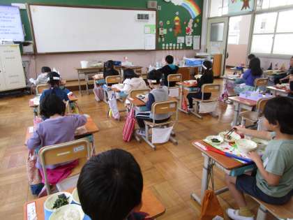 1年生を迎える会で6年生からもらった王冠。給食時間もかぶって食べる姿も見られました。