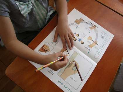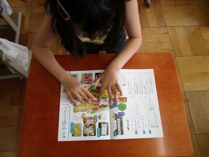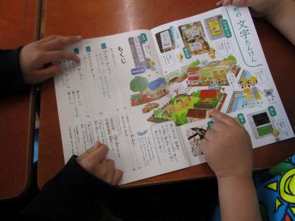 教科書を使って「町の文字たんけん」をしました。町にはたくさんの文字があふれていました。文字を書く姿勢とえんぴつの持ち方も確認しました。正しい姿勢で正しくえんぴつをもって字が書けるように色々な教科で練習していきます。
