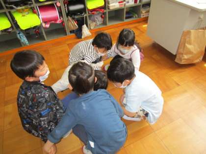 曲を聴いて,感じたことをみんなでお話ししました。「楽しそうな歌だよ。」「たくさんの人の声がしたよ。」「高い声が聞こえたよ。」など,たくさんのことを感じ取ることができました。