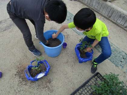 生活科の教科書で植え替えの手順を確認してから実践にうつりました。