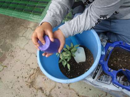 根っこが抜けてしまったり,葉っぱがとれてしまったりしないように慎重に植え替えをしている姿が見られました。