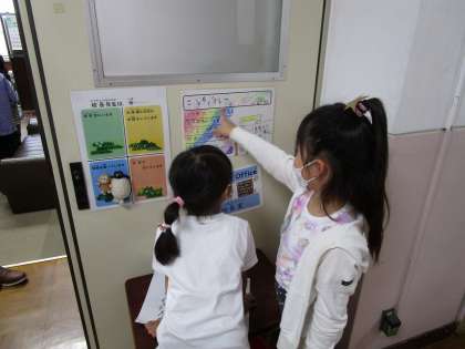 紹介カードを読みあげてあげたり,「ここは○○をするお部屋だよ。」と教えてあげたりしている姿がありました。