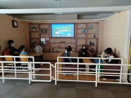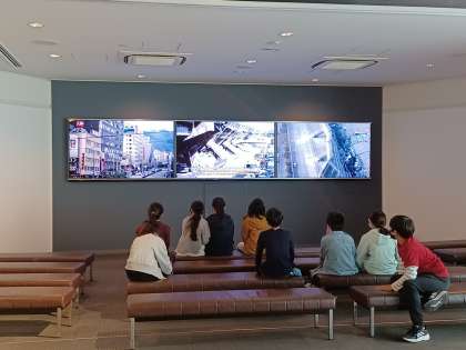 当時の地震の揺れを体験できるコーナーでは、激しい揺れのために思うように動けないことがよく分かりました。