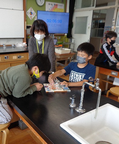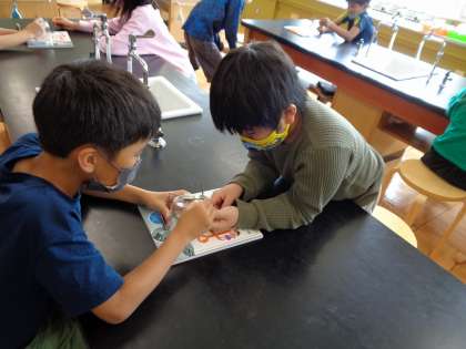 4年生と一緒に理科「電池を使って」の学習をしました。電池をモーターにつないで送風機を回しました。ペアになった友達と一緒に,協力して学習できました。電池のプラス極とマイナス極を入れ替えるとモーターが回る向きが変わることも体験しました。