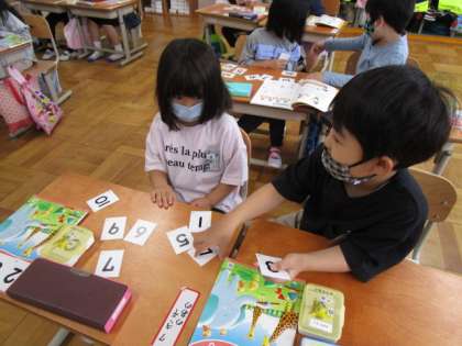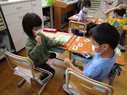 10はいくつといくつになるかをしっかりと身に付けるために,今日は数字カードを使って,ゲームをしました。