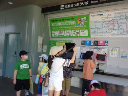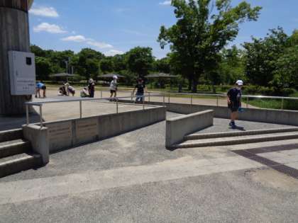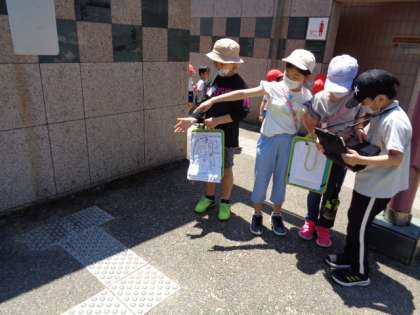 今回は梅小路公園に範囲を限って,やさしさ探しをしました。点字ブロックやスロープ,大きな扉の電話ボックスなど,どんな人へのやさしさなのか考える姿が見られました。