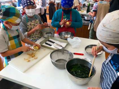 野菜を使った調理実習第一弾です!ほうれん草のおひたしと,ゆでいもを作りました。野菜を洗ったり切ったり,火を通したりすることで,食べやすく美味しくなりますね。