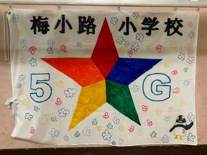 学年旗ができました!学年目標である「5G」の星を,花背の空に輝かせます。