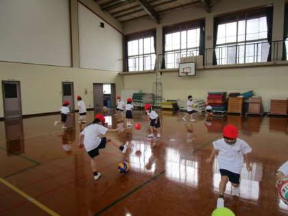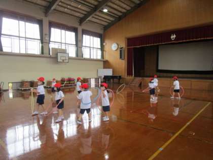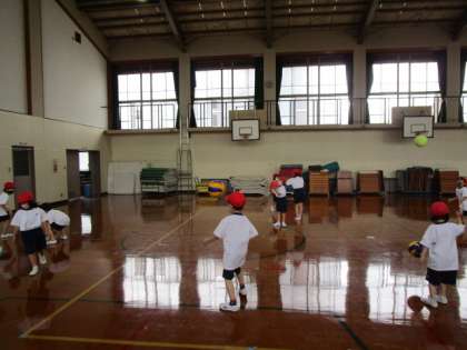 ボールは,上に投げて受けたり,地面についたりなどの技に挑戦しました。