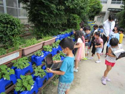 ロイロノートのカメラ機能を使って,朝顔の写真を撮りました。タブレットの操作にもだいぶ慣れ,スムーズになってきました。