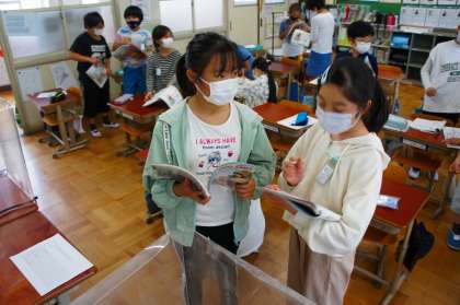 誕生日に何が欲しいか,ゲームを通して何度も尋ねる練習をした後,実際に友だちと尋ね合いました。