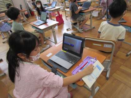 今日は,タブレットでクイズの答えになる身の回りのものの写真を撮りました。消しゴム,鉛筆,教科書などを写真に撮っていました。