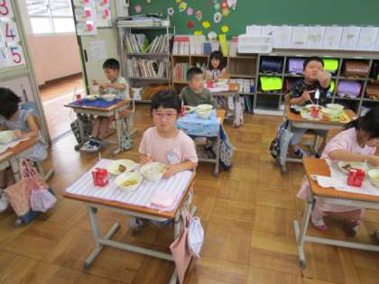 2組の学習の様子です。学習の後の給食の時間には,学んだことを早速生かして食べる姿が見られました。