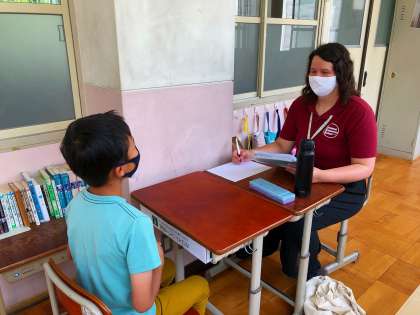初めてのパフォーマンステスト。子どもたちはやや緊張気味でしたが,学習してきたことをしっかりスピーキングできていました。「あ〜!緊張した!」という感想も。ヴェロニカ先生からも“Don't be a robot!”(ロボットのようにカチコチにならないようにね!)とアドバイスを頂きました。だんだんと,慣れていけるとよいですね。