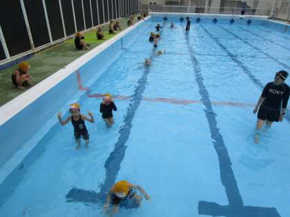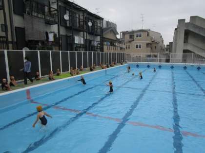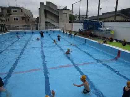 深くなったプールを走ったり,カニさん歩きをしたり,水中ロケットをしたりしました。