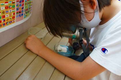 理科の学習でお世話になっている「メダカ」。卵を観察していると,続々と孵化していきます。心臓が動く様子,泳ぎ回る様子に,子どもたちは目が釘付けになっています。