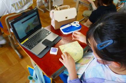 タブレットの資料箱に入っている動画を繰り返し見ながら,何度も挑戦することができました。「お家でもやってみます!」と,意気込んでいる児童もいました。