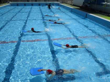後半の水泳学習では水位を上げて、浮いたり泳いだりとレベルアップしていきました。