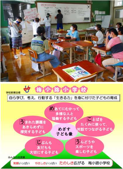 梅小路小学校の目指す子ども像、大切にしたい「う・め・こ・う・じ」の5つの目標に迫るために、具体的にどのようなことを頑張りたいか、どうしたら達成できるのか……