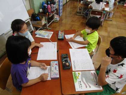 町探検に向けて、グループに分かれてインタビュー内容を考えました。
