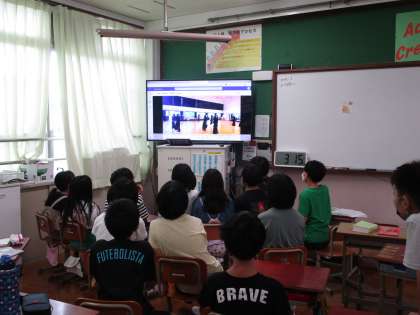 9月2日(金)に小中交流会を行いました。下京中学校に進学する他の3小学校の紹介を聞いた子どもたち。自分たちの学校との違いに驚きを隠せない様子でした。また、下京中学校の紹介では、きれいな校舎に圧倒されていました。中学校に進学することへの期待を膨らませることができたようです。