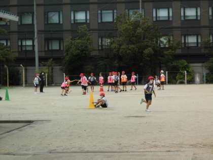 3年生は、体育科の学習で「リレー」に取り組んでいます。