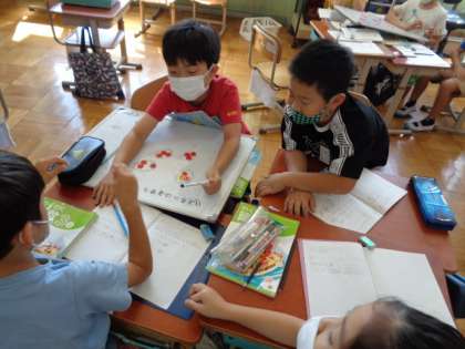 今日は,物を分けた時に,あまりが出ることに気づくことがねらいで