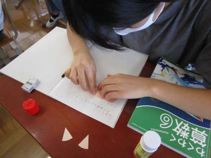 算数科「円の面積」では、8等分した円を互い違いに並べていくことで、平行四辺形のような形になることを確認した子どもたち。16等分、32等分、64等分と細かくなるにつれて長方形の形に近づいていくことから、円の面積の公式を導き出すことができました。